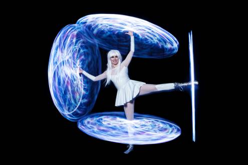 She is a diverse circus performer: from fire performing, to wonderful LED light shows, to clowning and kids entertainment. Isabella Hoops does it all!
